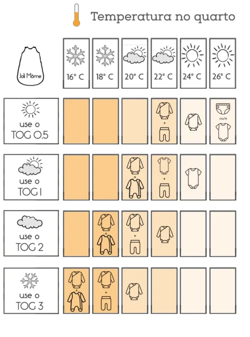 O TOG ajuda a equilibrar 3 fatores na hora de dormir: a temperatura do quarto, a roupa do bebê e o modelo de saco de dormir.